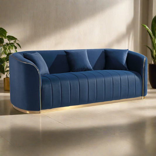Aleeya Blue Velvet 3 Seater Sofa